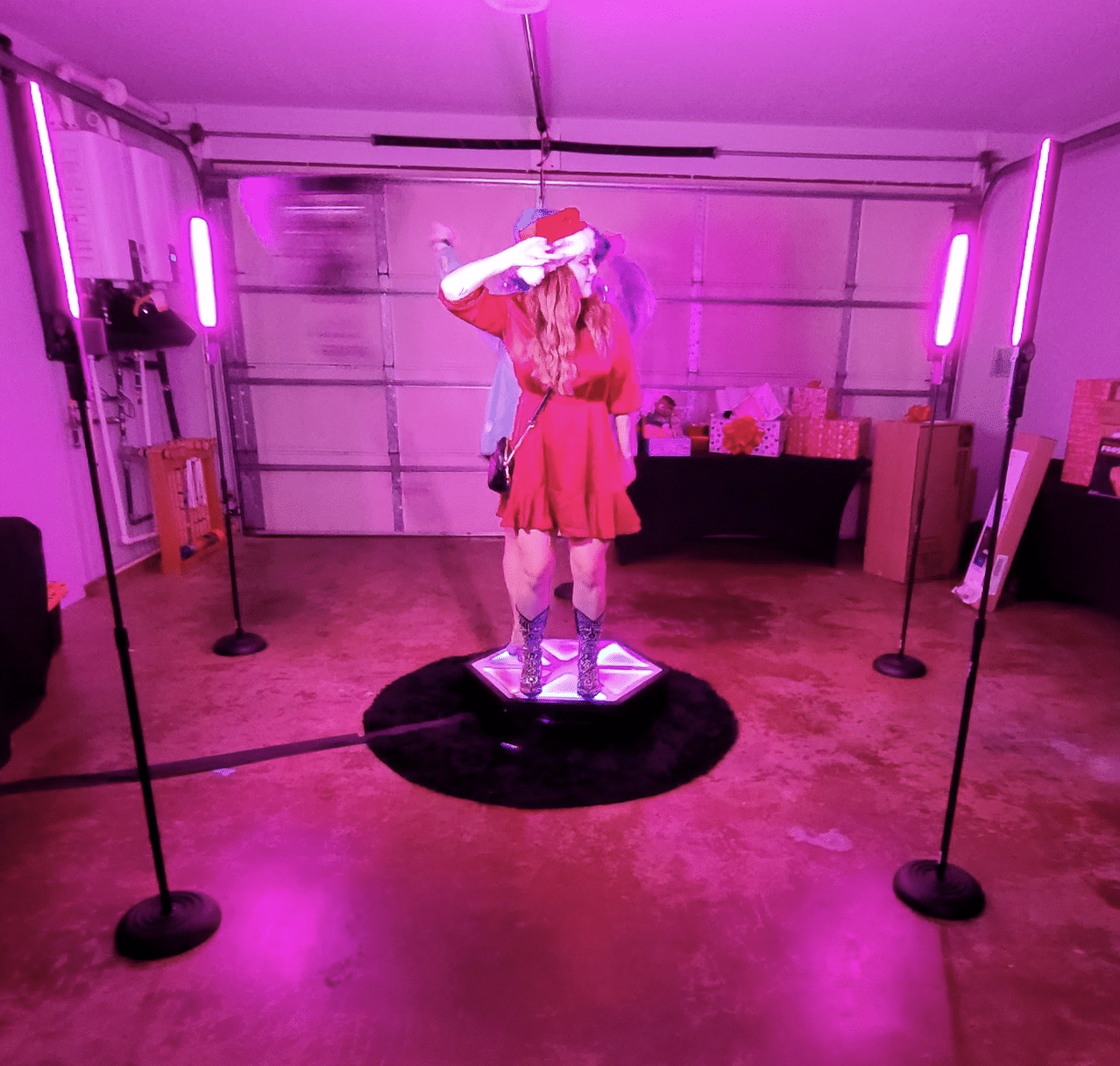 Our 360 PHOTO BOOTH is a modern style 360 platform, built to capture amazing videos from any event. The guests step onto the 360 platform, which holds 1-4 people, and get to dance the night away while capturing a stunning 360 Video that they can cherish for a lifetime. After the camera is done spinning, the guests step to the side where they can share their videos instantly via Text or E-Mail. Customize your 360 Photo Booth border with one of our thousands of available pre-made and customizable templates or provide us with what you are wanting for your border and we can create something even more custom for your event. Using a professional camera, lighting and award winning software, you get your 360 Video instantly.